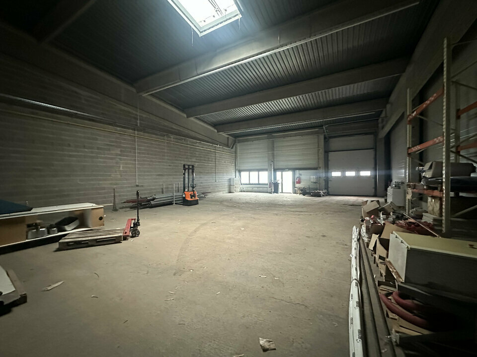 Le second lot, d’une surface de 865 m², dispose de deux portes sectionnelles, facilitant la gestion des flux. Il bénéficie également d’une aire extérieure située à l’arrière du site, en parties communes à usage privatif, idéale pour du stockage extérieur. Le hall est équipé d’un pont roulant, d’un réseau d’air comprimé, de vestiaires ainsi que d’un espace bureaux intégré, offrant un ensemble complet et opérationnel pour une activité industrielle ou technique.